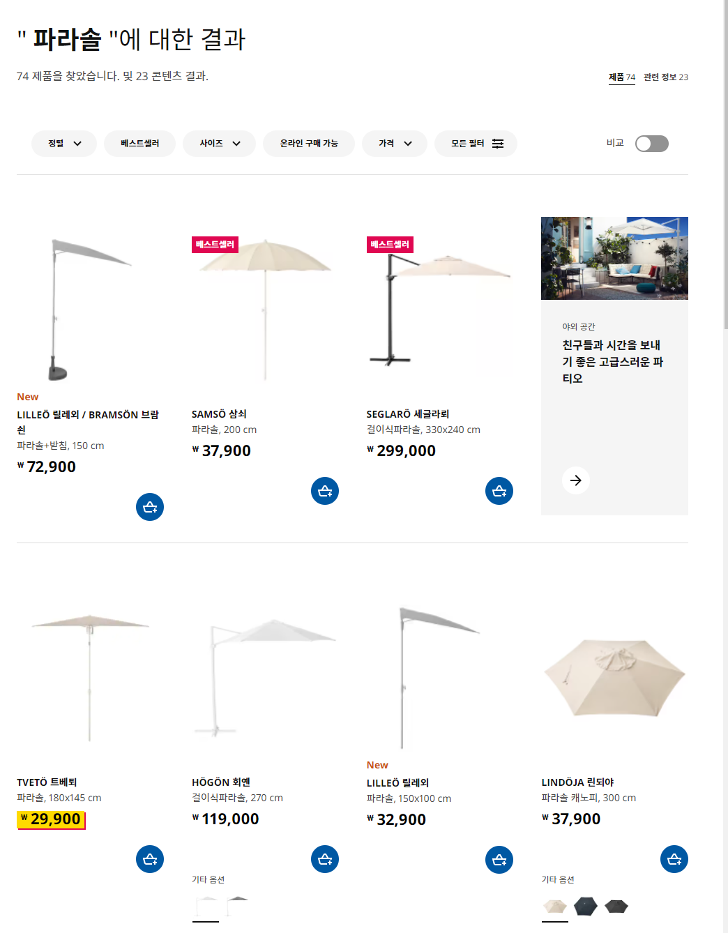 받침대가 없으면 아마 유지가 안될 듯. 바로 날라가면서 안전사고 분명히 난다. 가격대가 이러다보니까 이게 진짜 이케아에서 사는게 저렴한거 맞나 싶으면서 바로 다른 업체 파라솔은 없는지 확인하러 가게 된다.