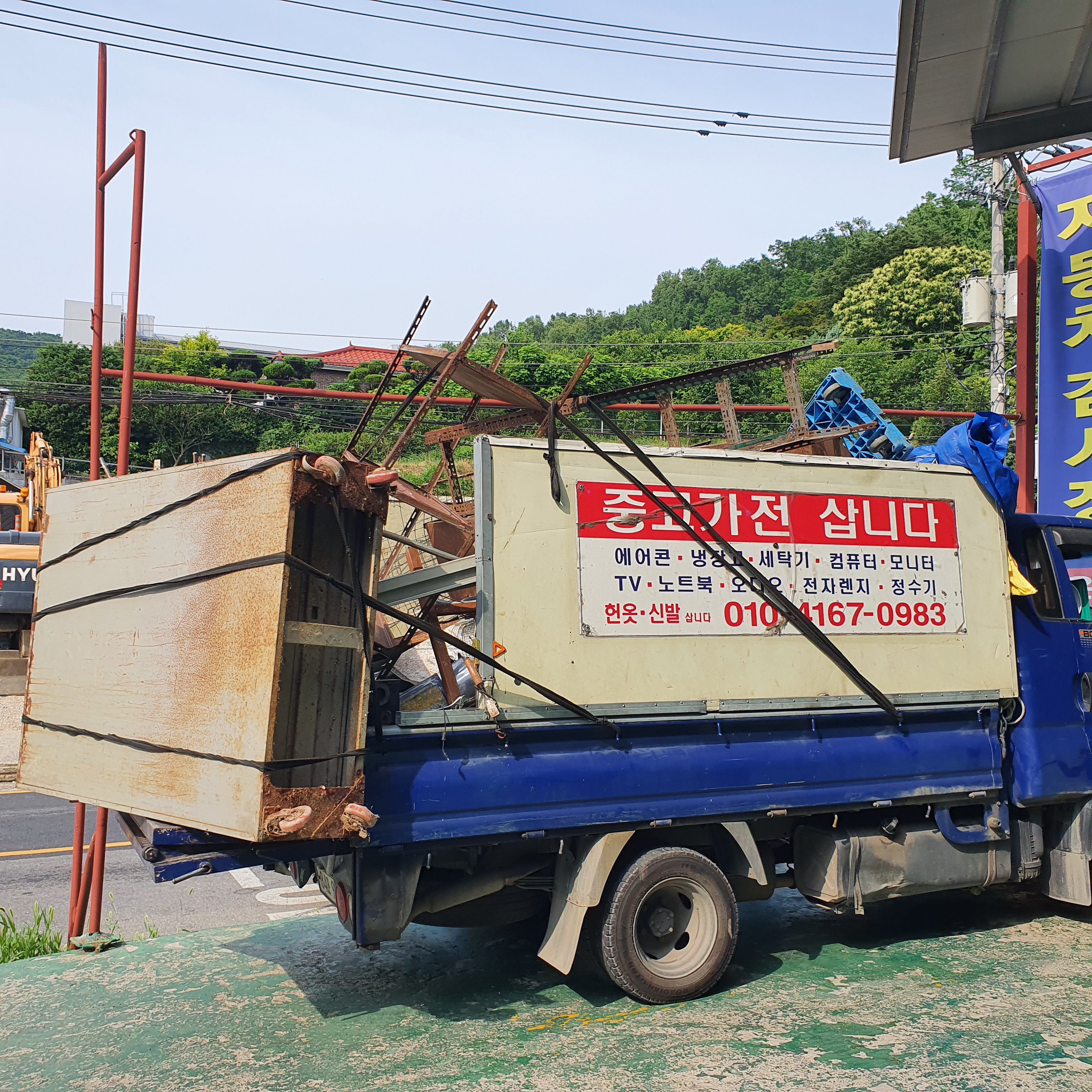 직접 할 수 있는 부분은 직접 하고 일부는 고물 수거 업체 도움을 받아 처리 했다. 구석까지 쌓여 있던 것들을 전부 밖으로 꺼내어 품목 별로 분리 하여 배출하고 위의 사진처럼 고물상에서 받을만한 세탁기와 철제 캐비넷 등은 따로 빼놓아 고물상 출장 수거를 알아보았다. 하지만 예상치 못했던 것이 있었는데, 바로 고물상에서도 출장 수거는 수거해 가시는 무게가 적어도 1톤 이상은 되어야 출장을 나오신다고 하더라. 멀지 않은 바로 근처 고물상임에도 불구하고 3군데 정도 문의를 드렸는데 답변은 똑같았다.